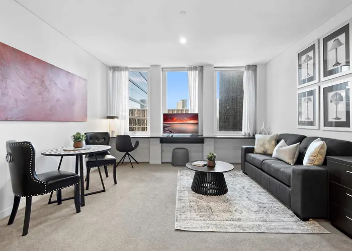 Az apartman 2 km-re helyezkedik el a Rod Laver Aréna térségétől és körülbelül 1 km-re van a The Ian Potter Centre területétől. Az apartman a Melbourne üzleti e körzetben kínál szállást, nem messze a Melbourne-i Akvárium területétől. A The Meat & Wine Co és Nashi ausztrál ételeket szolgál fel 5 perc sétára az ingatlantól.